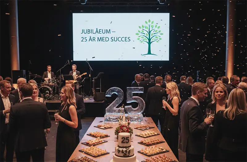 Vi skaber uforglemmelige jubilæumsfester, der hylder virksomhedens rejse og de mennesker, der har gjort det muligt.